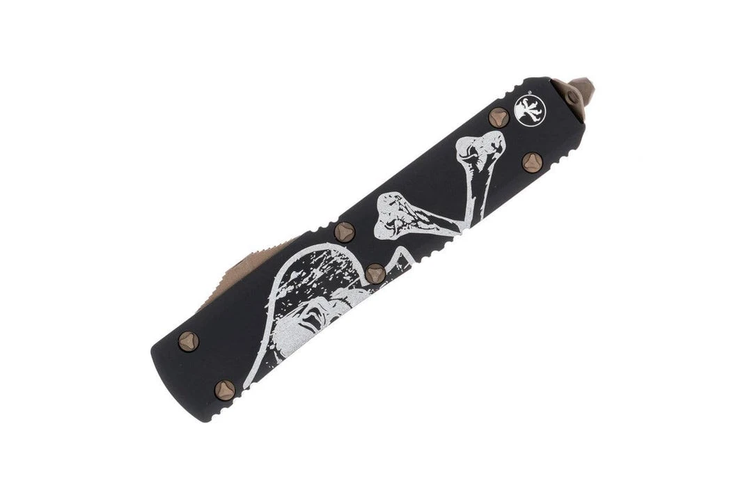Microtech 122-13DCS Ultratech D/E – Black Handle – Bronze Apocalyptic Blade – Death Card Engraving – Signature Series