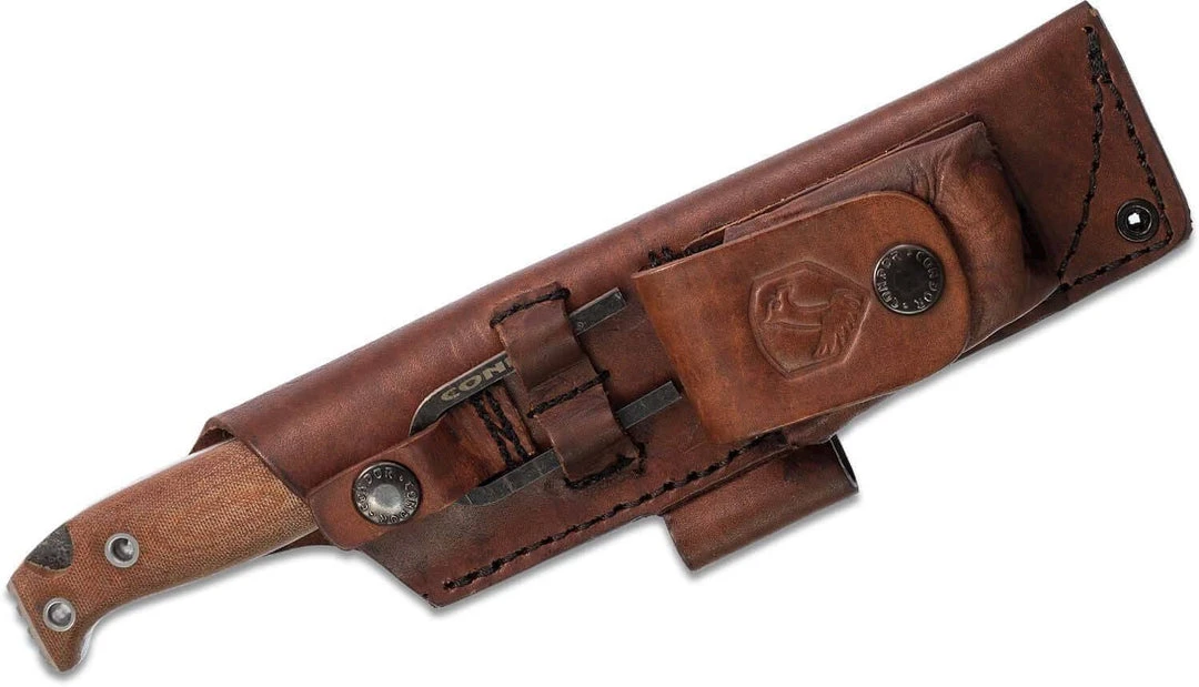 Condor CTK3921-5.1HC Selknam Knife 5.12″ 1075 Carbon Steel Blade, Micarta Handles, Welted Leather Sheath with Fire Starter