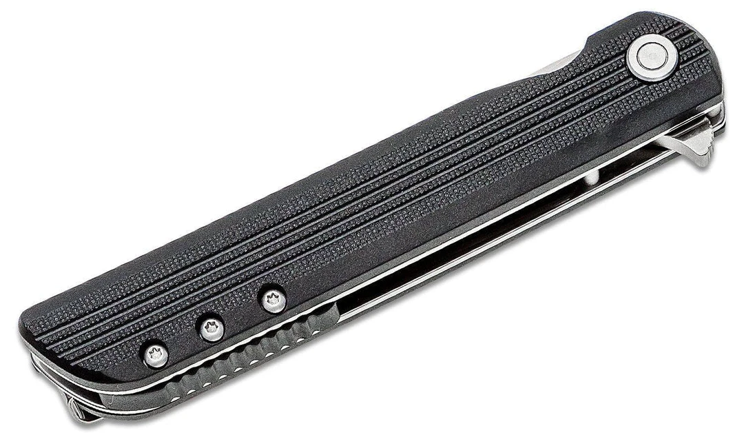 Designed by Matthew Lerch of Sussex, Wisconsin, the LCK + is designed with Matthew’s signature style: functional art. With a sleek, linear design, the formidable drop point stainless steel blade meets the glass-reinforced nylon handle in what looks like a nearly seamless transition. The grooves on the handle elevate the grip in rain, mud, and grease. Built with Assisted Opening, simply nudge the blade open part-way and the innovation activates, snapping it open at super high speed. The IKBS ball bearing pivot system makes for a smooth rotation and a liner lock keeps it solidly in place.