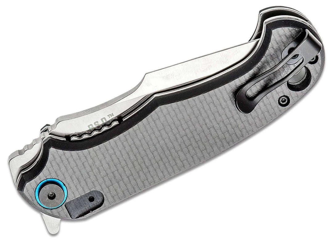 When designer Jim Hammond of Birmingham, Alabama put pen to paper, he did so with the intention of creating a knife that was equal parts powerful, compact, and highly aesthetic. The PSD hits the mark. The impossible-to-miss re-curve of the blade performs when making deep cuts and slicing, while the double grind makes pushing more efficient. The surprisingly compact G10 and carbon fiber handle accommodates a solid four-finger grip and is finished with an electric blue pivot and pocket clip.Â