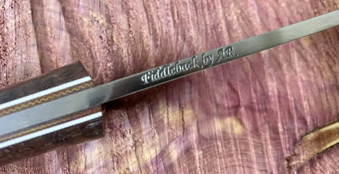 PLEASE READ: This knife information and pictures represents the actual knife sold and custom built by Fiddleback Forge. Quantity is limited and each knife is handmade making this a unqiue and hard to find.