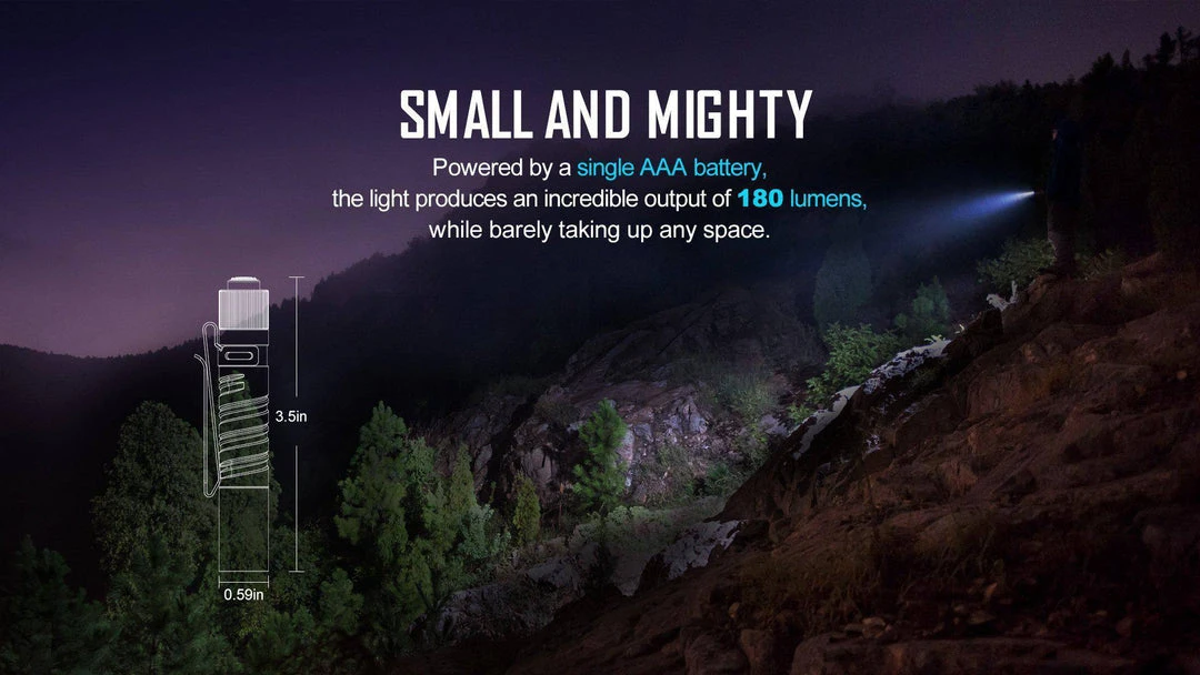 The i3T EOS Ti is a slim EDC flashlight featuring a tail switch and made of high grade titanium. It is powered by a single AAA battery and delivers a max output of 180 lumens. Its excellent LED, paired with the TIR optic lens, produces a soft and balanced beam. It has a dual-direction pocket clip that allows users to clip the flashlight to a pocket or a backpack strap right away. The i3T EOS Ti is an incredibly convenient illumination tool for your everyday carry.