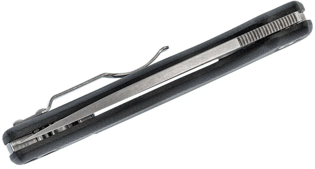Although the Shaman’s handle shape and ergonomics follow the spirit of the Native, its handle construction and lock mechanism are distinctly different. The handle’s scales are 3D machined from G10 and thoughtfully contoured to provide a comfortable, secure grip. Skeletonized stainless steel liners nested within the smooth, matte-finished scales reinforce the handle’s structural strength and form the basis of the knife’s patented Compression Lock. This high-strength mechanism is located in the spine of the handle, where it contacts the web of the thumb during normal use and is well protected from accidental release. Its location also allows the blade to be closed safely and easily with one hand without placing your fingers in the path of the edge. To ensure convenient carry and keep the knife poised for immediate access, the handle includes a stonewashed four-position pocket clip that offers a choice of left or right-side, tip-up or tip-down carry.