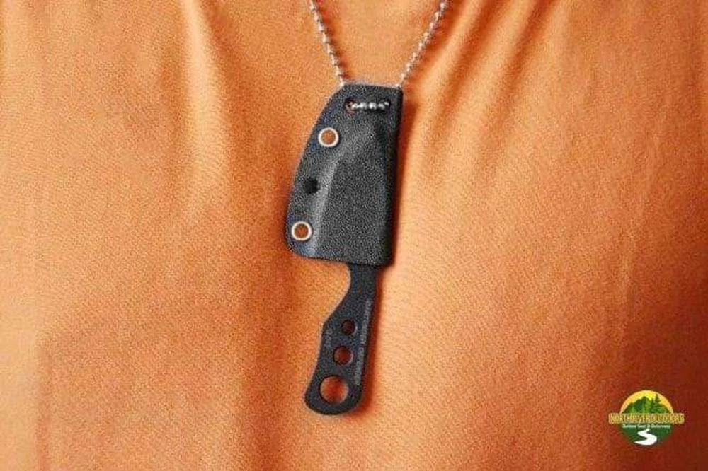 This may be one of the new great ideas for the last of the “real guys.” A combination bottle opener and mini knife. Handy for dozens of survival or party chores. Made from 1/8″ thick, 1095 high carbon steel, with our black traction coating. May be worn around the neck or in a pocket.