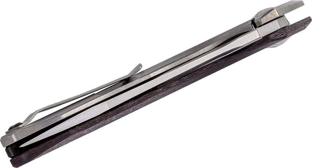 The 0462 also features a colored carbon fiber front scale with a deep-red weave of color. The back is titanium with an attractive stonewashed finish. The 0462 locks up securely thanks to a frame lock with hardened steel lockbar insert. Like many ZTs, the 0462 opens quickly and easily with the KVT ball-bearing system and a built-in flipper.